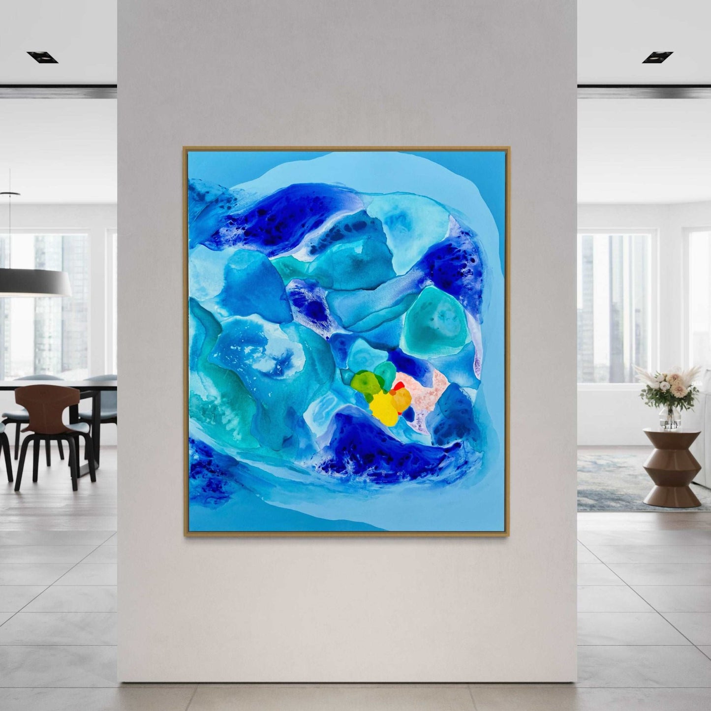 Blue Bay captures the feeling of retreating into nature—a quiet space where you can breathe and let the world melt away. Part of the Beneath the Surface series, it reflects a hidden sanctuary inspired by the vivid colours of Australia's coral and the sparkling blues of its waters. Layers of rich colour and textured detail invite you to get lost in the story this piece holds.